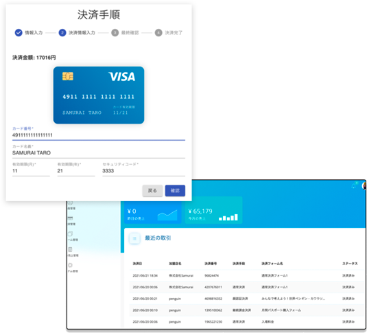 事業者様の操作する管理画面も簡単操作ですぐに事業者様のサイトに決済サービスを導入することができます。